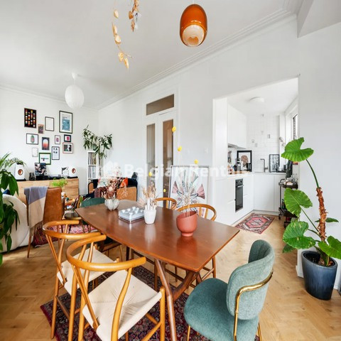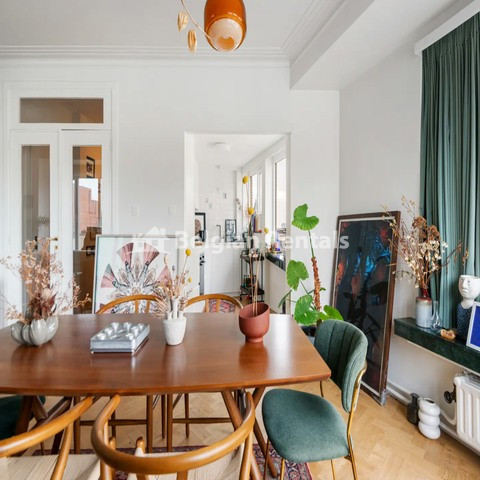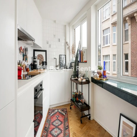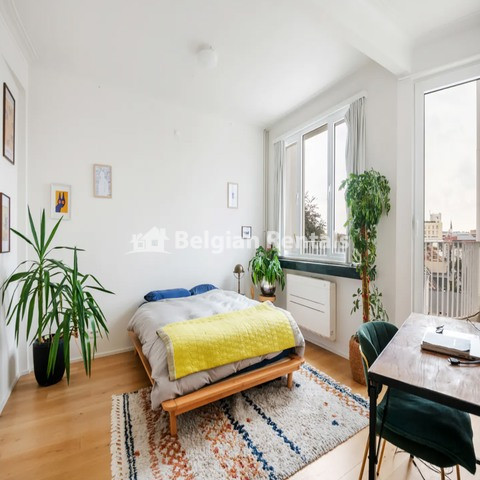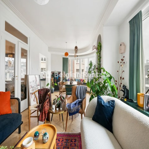 This bright apartment on the 7th floor was completely renovated in 2018. Through the large entrance hall, you walk directly into the spacious living room with an integrated dining room on a beautiful new solid wood herringbone parquet. Here, the large windows, finished with beautiful green marble edges, immediately stand out. Adjacent, you will find the modern kitchen, which is fully equipped and includes a refrigerator, separate freezer, oven, induction hob, and extractor hood. In the current layout, we find 1 spacious bedroom, part of which is used as an office space, making the apartment perfect for those who want to work from home. Off this bedroom, there is also a very nice and private terrace with a view. The bathroom is stylishly decorated with a comfortable walk-in shower and a washbasin. Furthermore, there is a separate guest toilet with a hand washer adjacent to the entrance hall, and a handy small room that serves as a cloakroom. A private basement storage provides more than enough storage space.