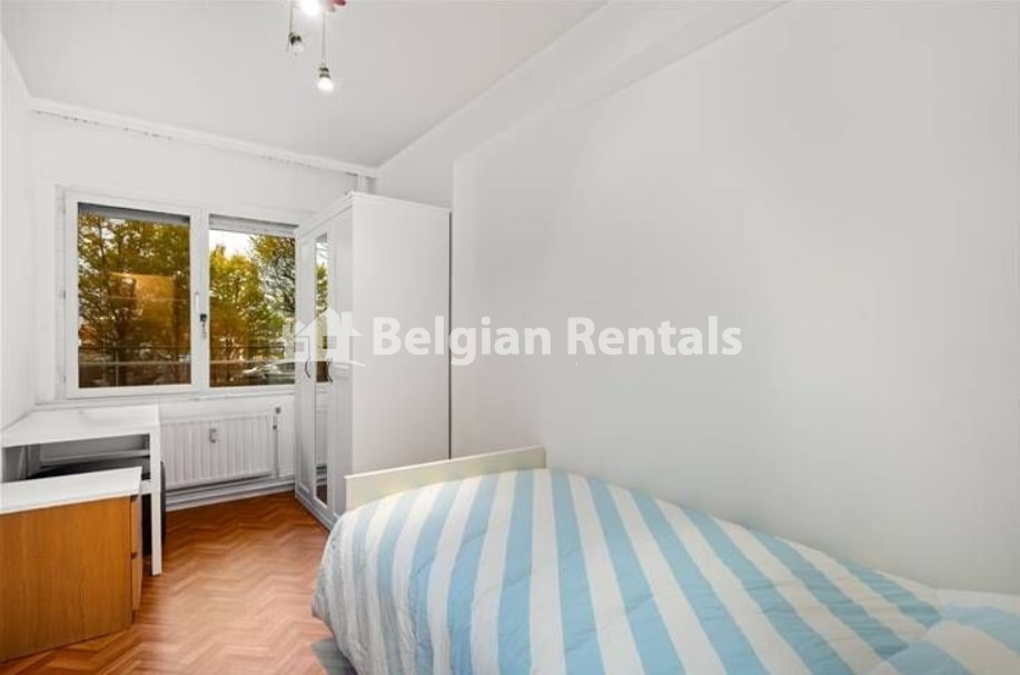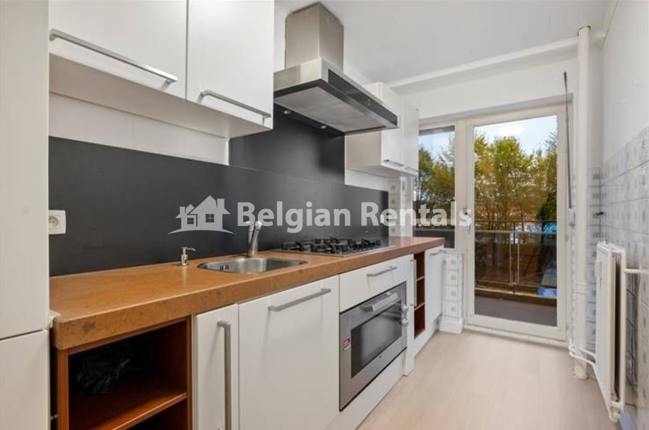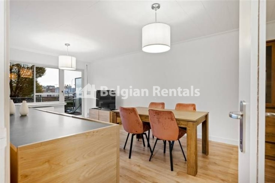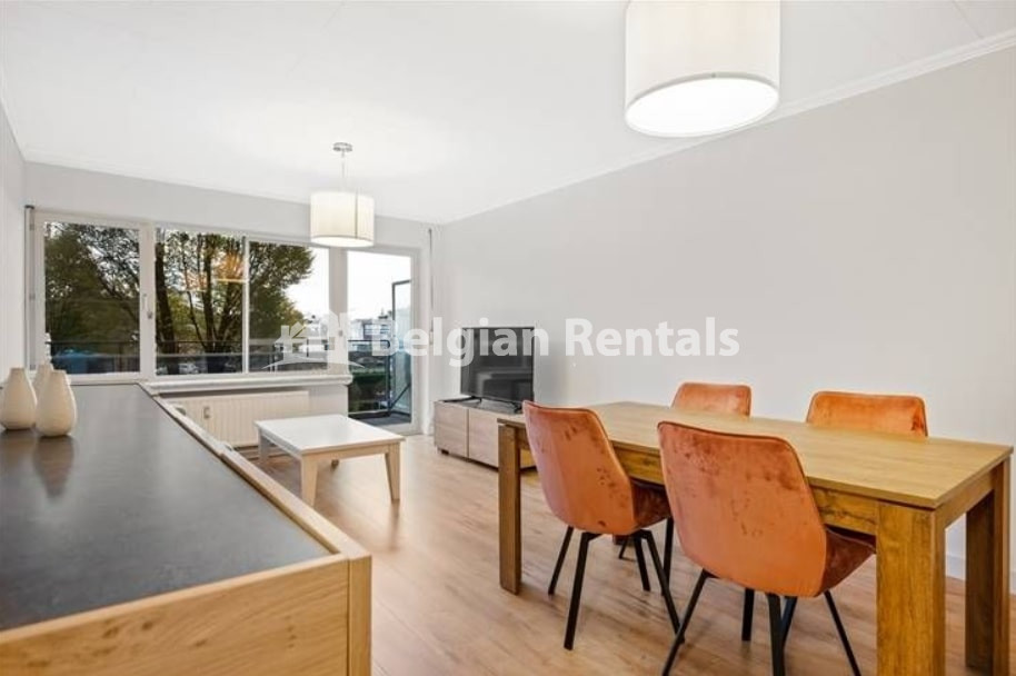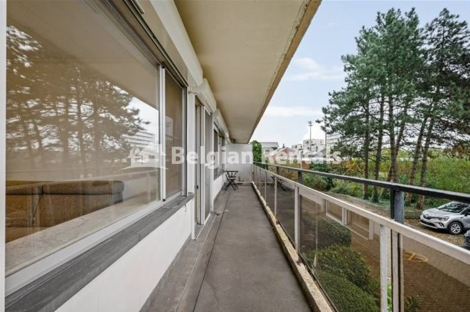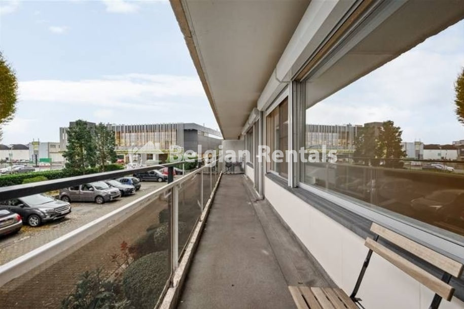 Beschrijving: U betreedt het appartement via de inkomhal, die voorzien is van opbergruimte. Aan uw rechterzijde vindt u een aangename woonkamer, die toegang geeft tot het terras, waar u een wijds zicht heeft over de stad. Daarnaast situeert zich de keuken, die eveneens toegang biedt tot het oost geörienteerd terras. De badkamer is uitgerust met een inloop douche en enkel lavabo meubel, die volledig gebruiksklaar zijn. Het appartement is voorzien van een apart toilet. Recht tegenover de badkamer treft u twee slaapkamers aan, dewelke ook toegang bieden tot het doorlopende terras. In de ondergrondse kelder bevindt zich een afzonderlijke kelderberging. Ten slotte is er ook een ondergrondse parkeerplaats beschikbaar.
